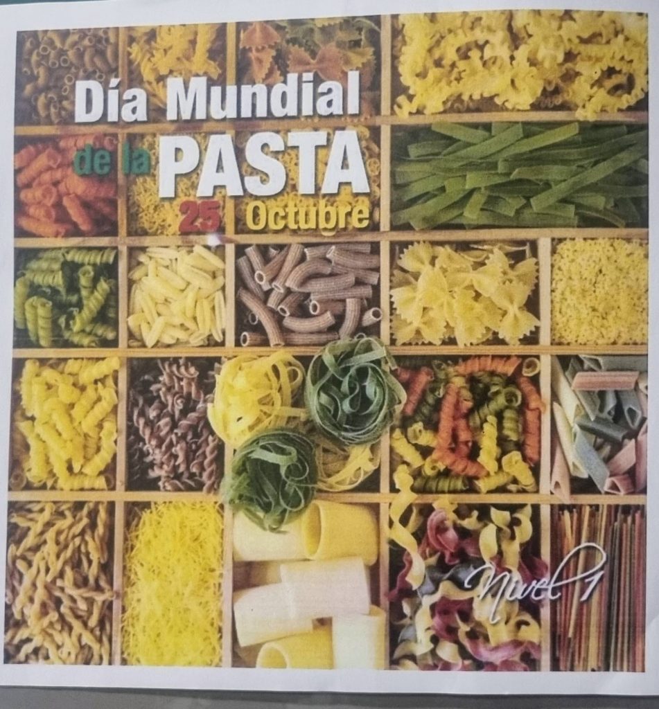 El Día Mundial de la Pasta se celebra, desde hace 21 años, el 25 de octubre. Este día fue escogido por los fabricantes del producto de distintos países con motivo de la celebración del primer congreso mundial de pasta celebrado en Roma en el año 1995.