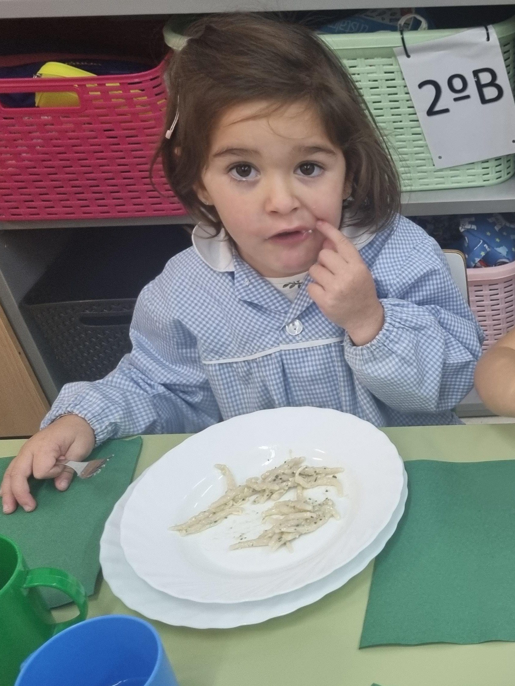 Para celebrar este día en nuestro comedor escolar, nuestras cocineras Yasmina, Cristina y Pili han querido cocinar unos macarrones al pesto elaborando ellas mismas la pasta fresca que podéis ver en las imágenes que acompañan a este texto. Esta pasta elaborada por ellas mismas solo han sido una pequeña muestra porque por razones lógicas es imposible elaborar la pasta fresca para todos los comensales. Por ello se ha utilizado una pasta fresca pero comercial, no artesanal.