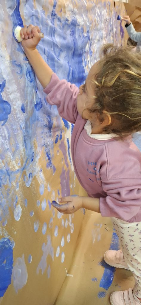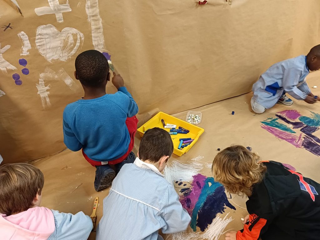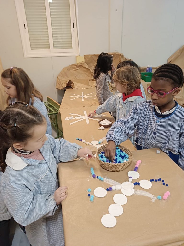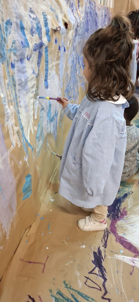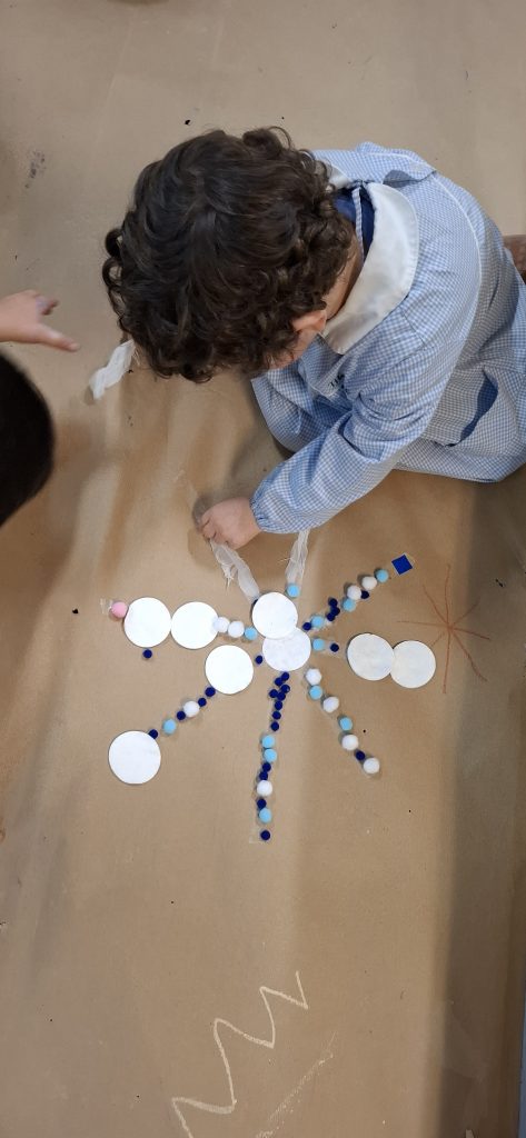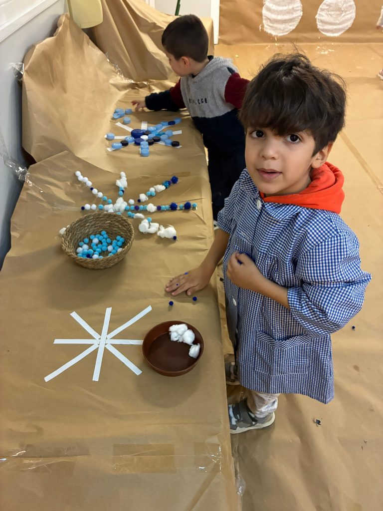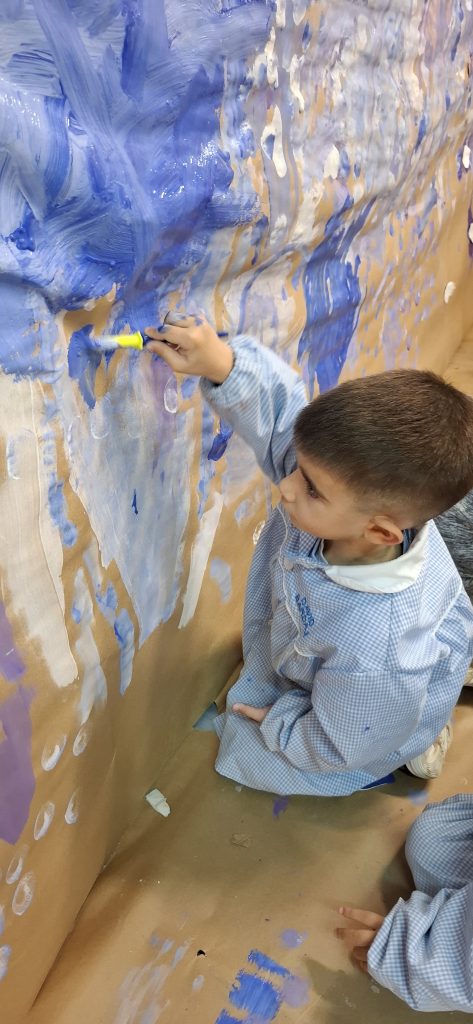 Aprovechando que nuestra casita seguía forrada de papel, los peques de infantil hemos ido de nuevo a la casita y hemos dado rienda suelta a nuestra imaginación. Esta vez el invierno ha sido el protagonista por lo que hemos pintado con colores fríos y hemos hecho copos de nieve con piezas sueltas ❄️