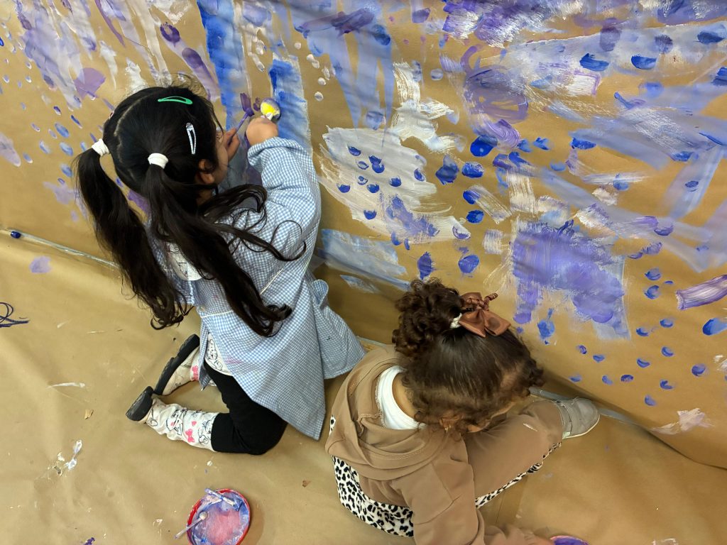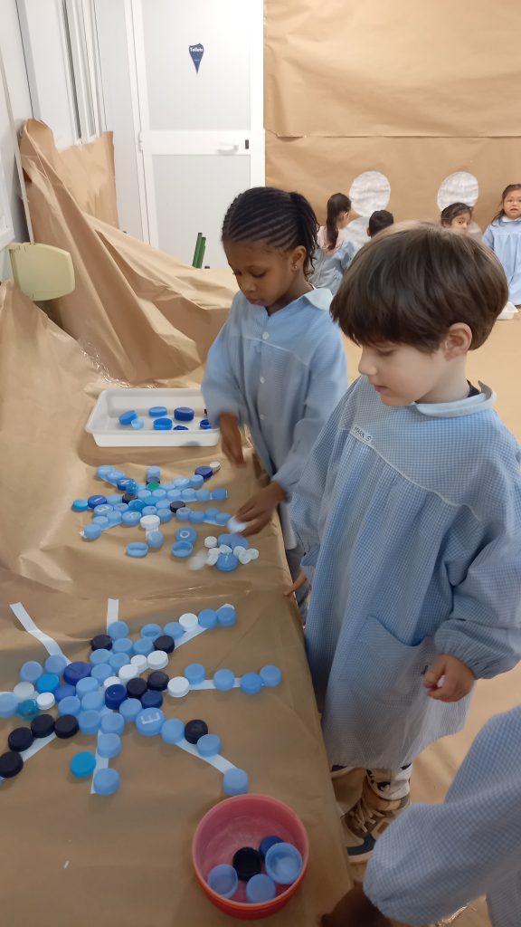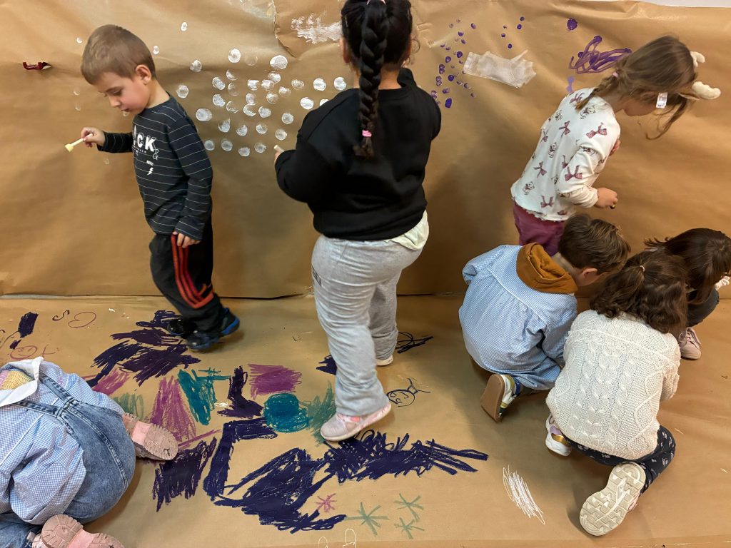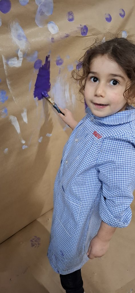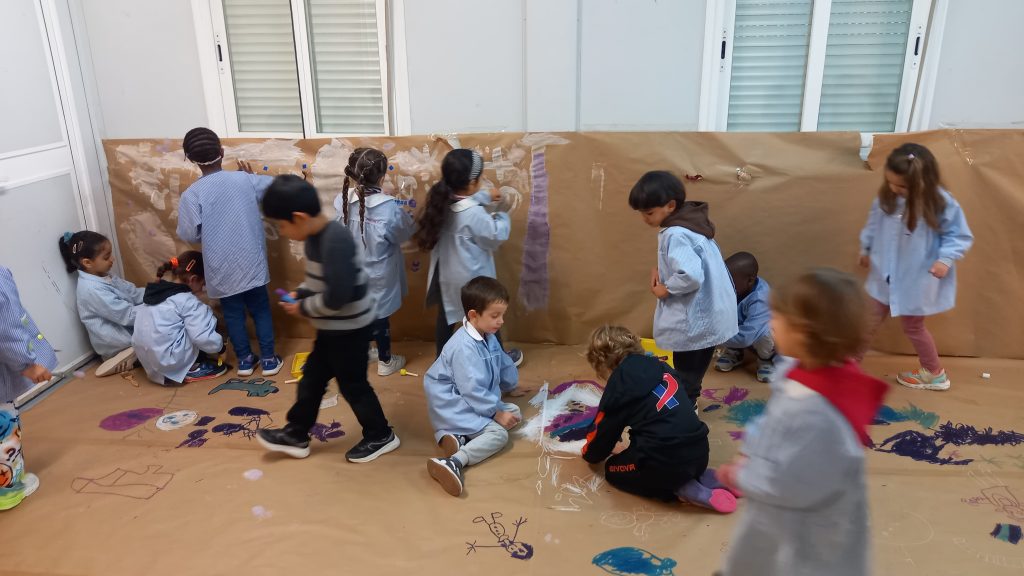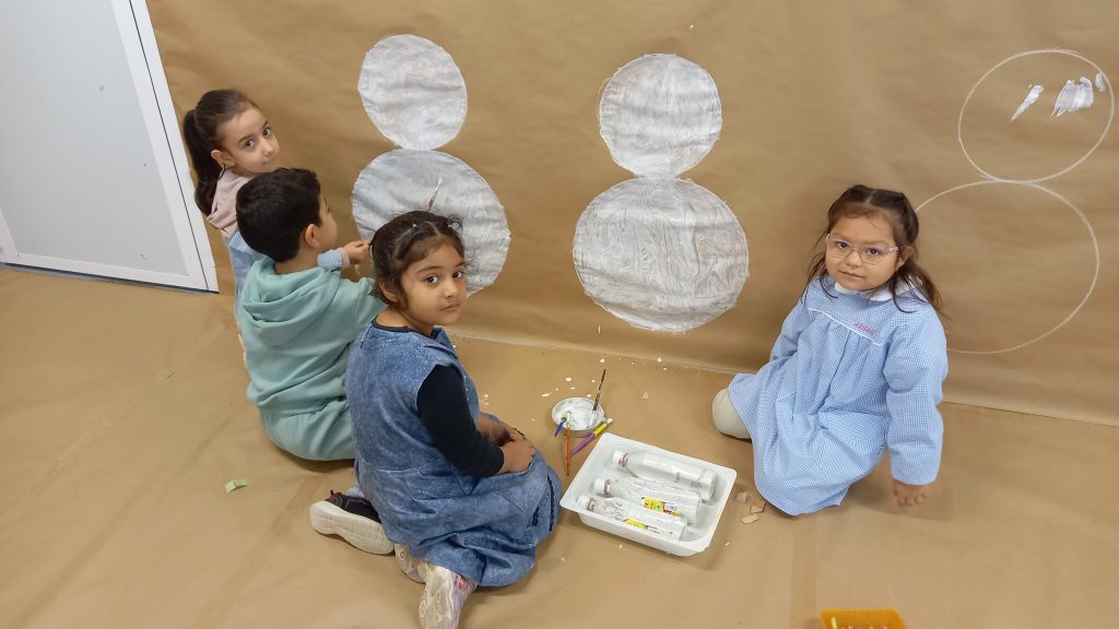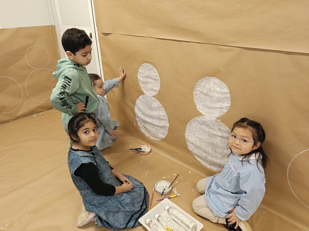 Aprovechando que nuestra casita seguía forrada de papel, los peques de infantil hemos ido de nuevo a la casita y hemos dado rienda suelta a nuestra imaginación. Esta vez el invierno ha sido el protagonista por lo que hemos pintado con colores fríos y hemos hecho copos de nieve con piezas sueltas ❄️