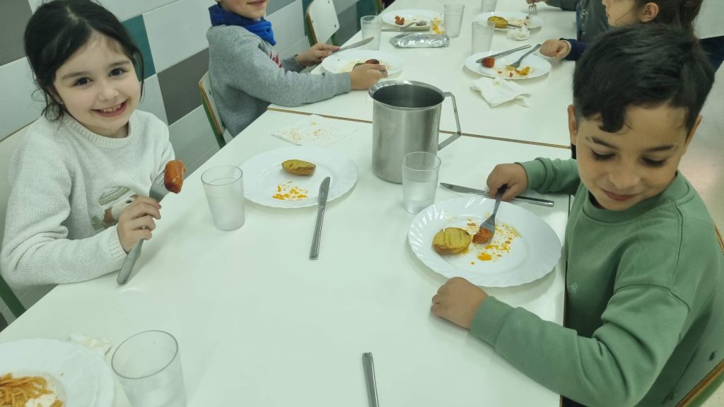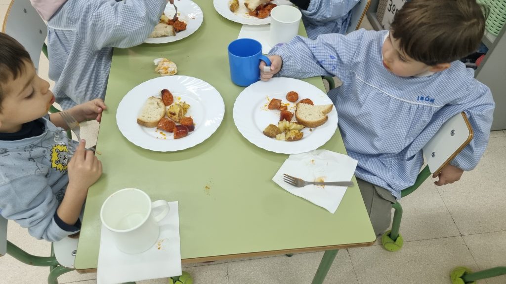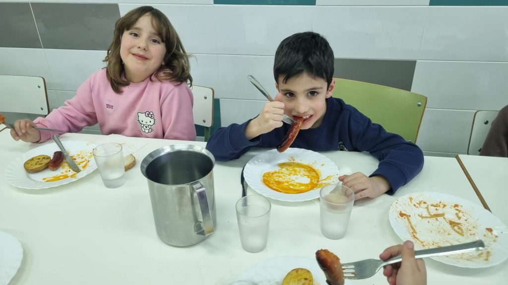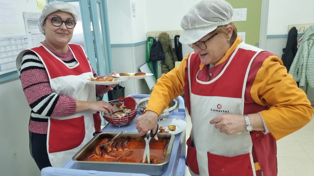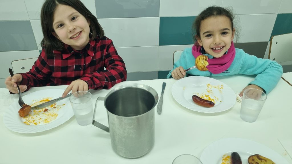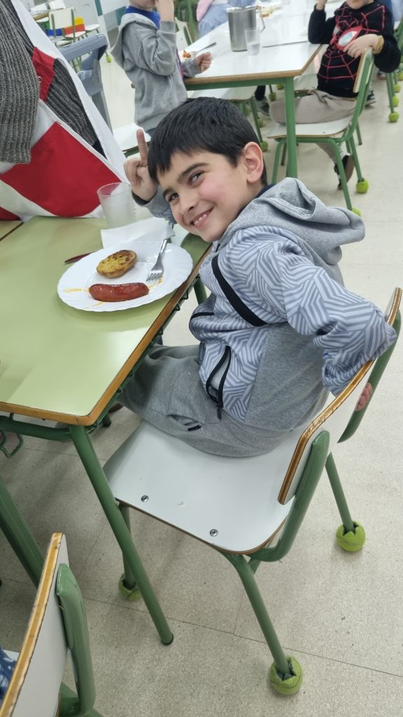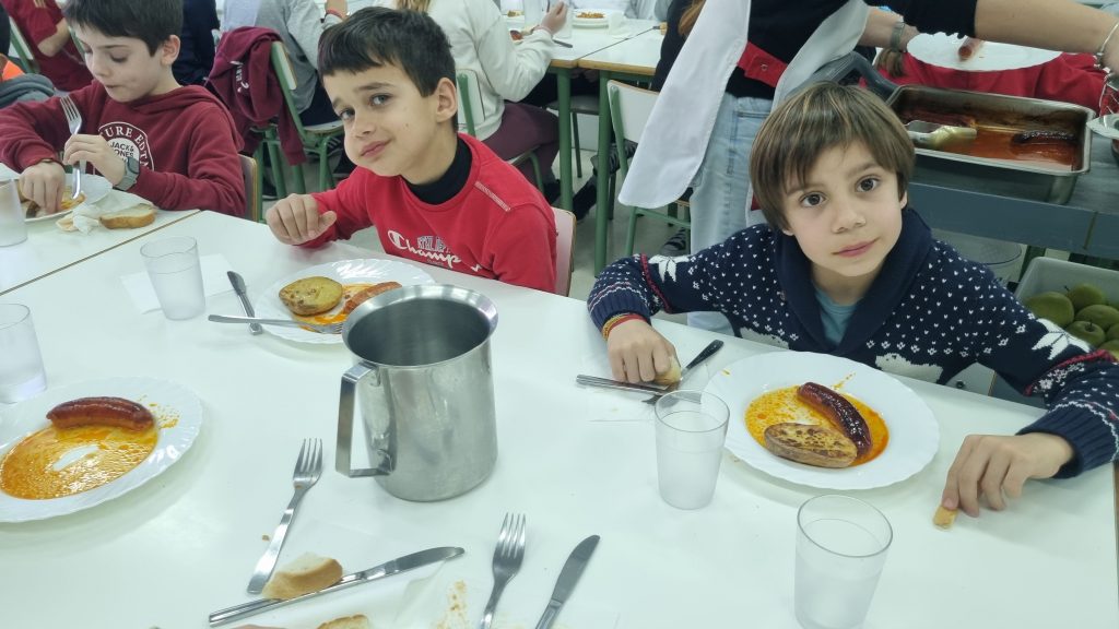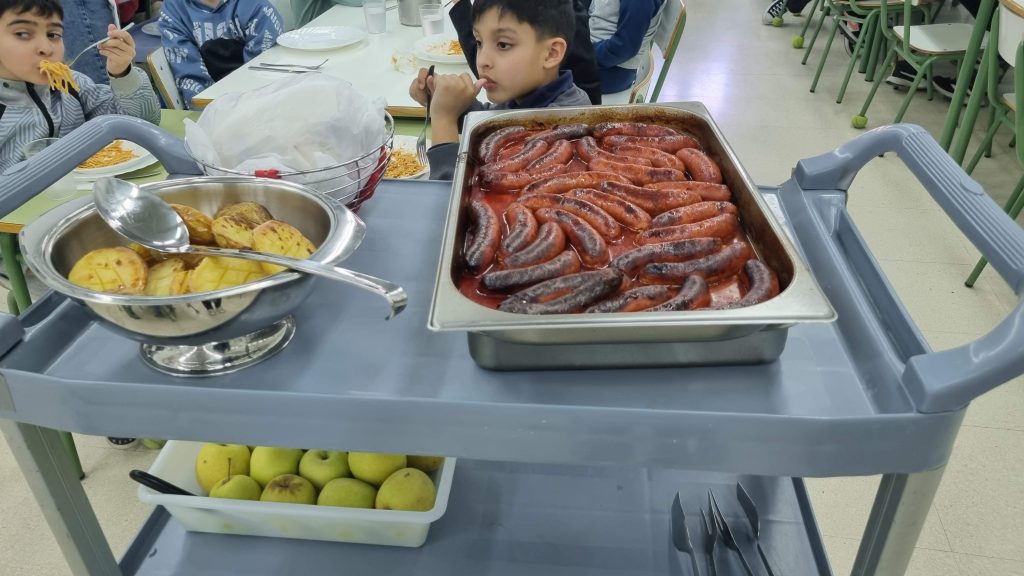 El menú de hoy en el comedor, para celebrar este día, han sido unos deliciosos chorizos a la sidra elaborados con todo el cariño y dedicación por nuestras maravillosas cocineras Yasmina, Cristina y Pili.