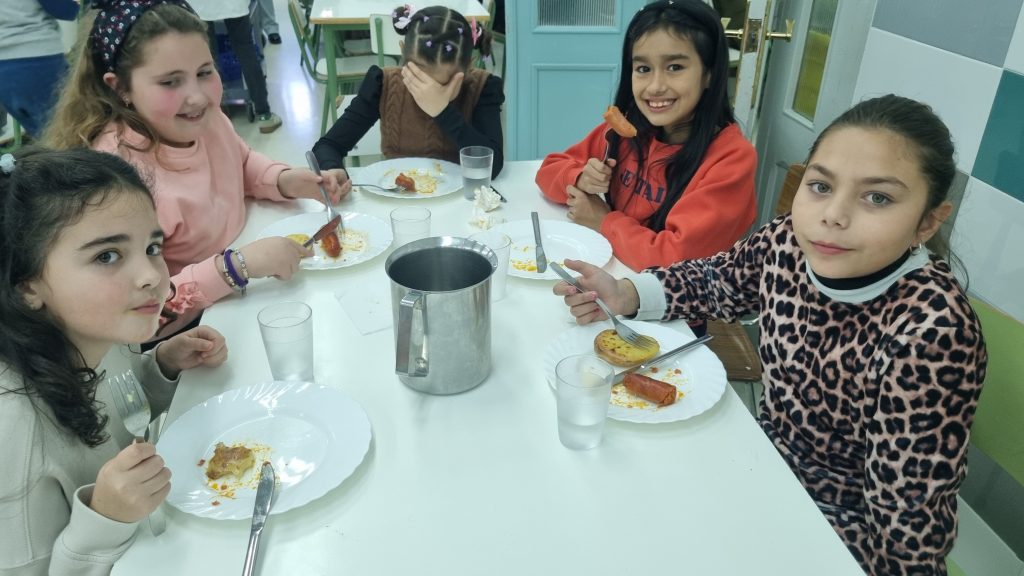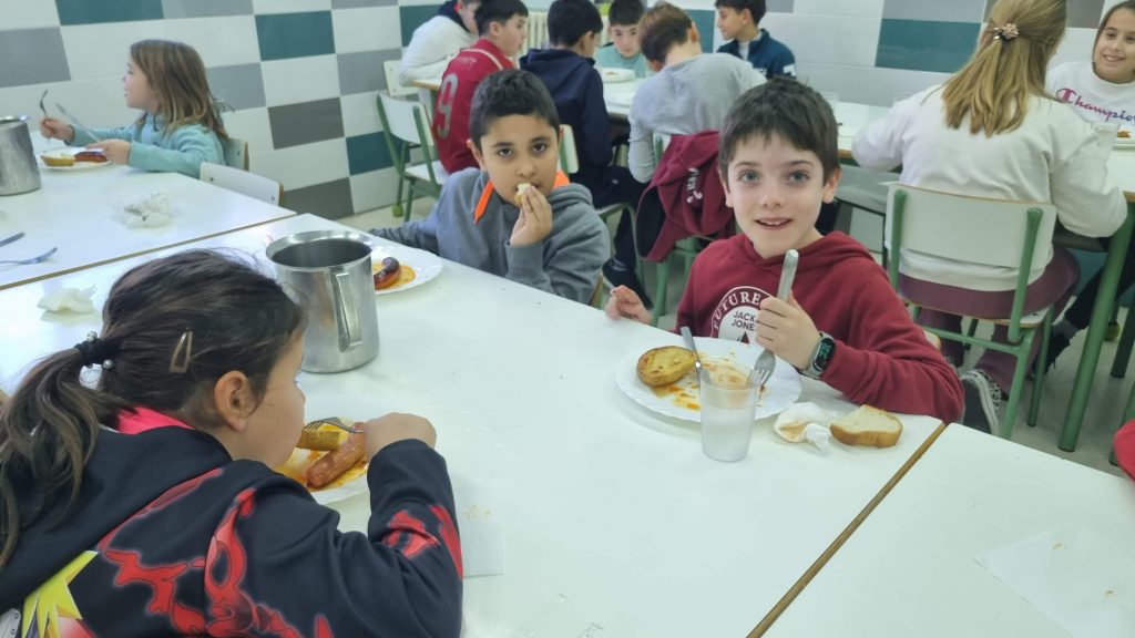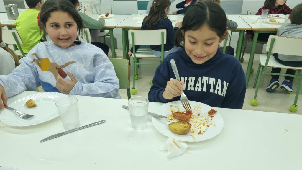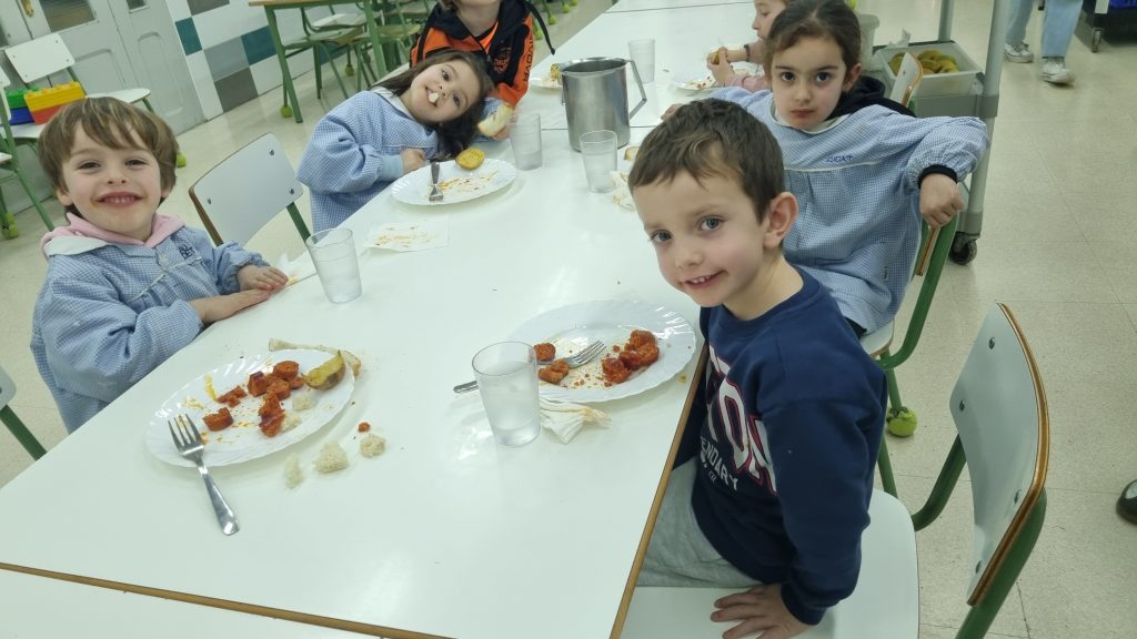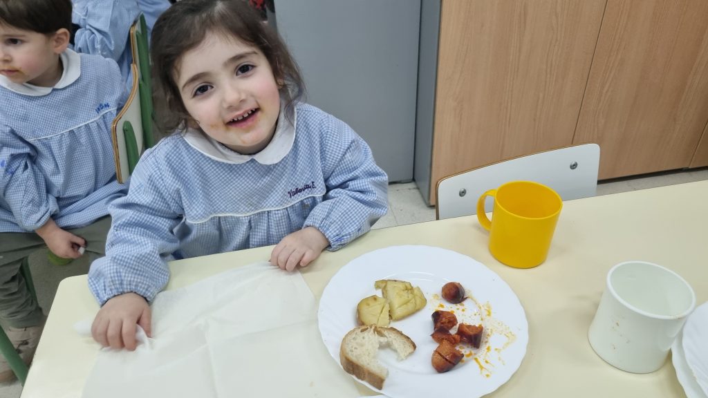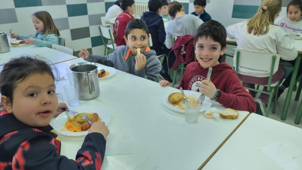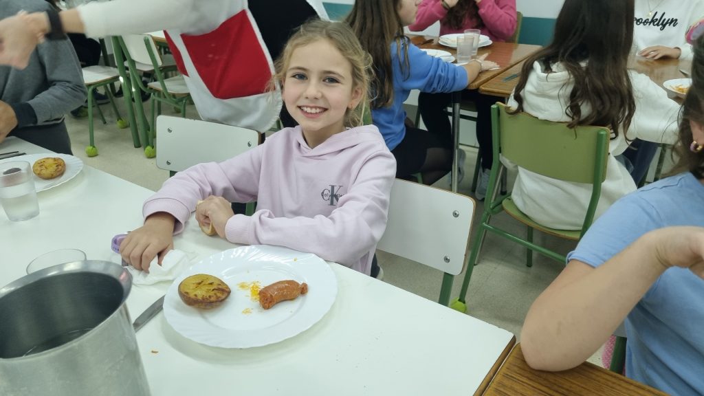 El menú de hoy en el comedor, para celebrar este día, han sido unos deliciosos chorizos a la sidra elaborados con todo el cariño y dedicación por nuestras maravillosas cocineras Yasmina, Cristina y Pili.