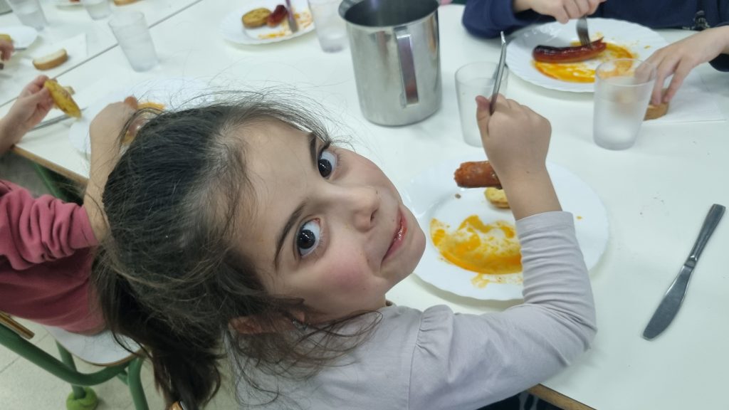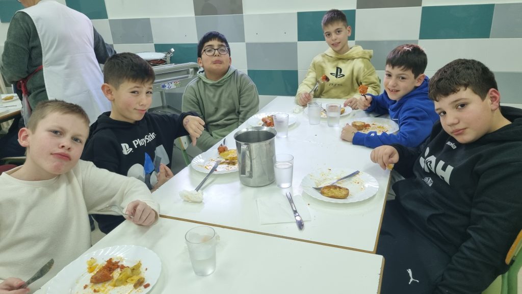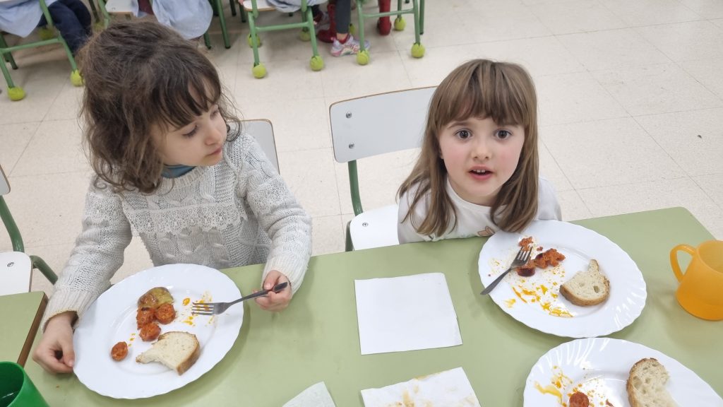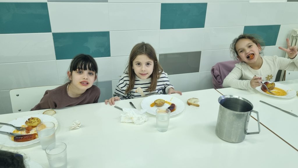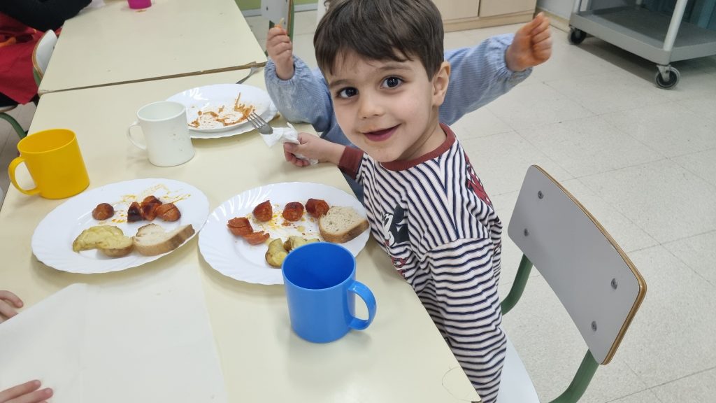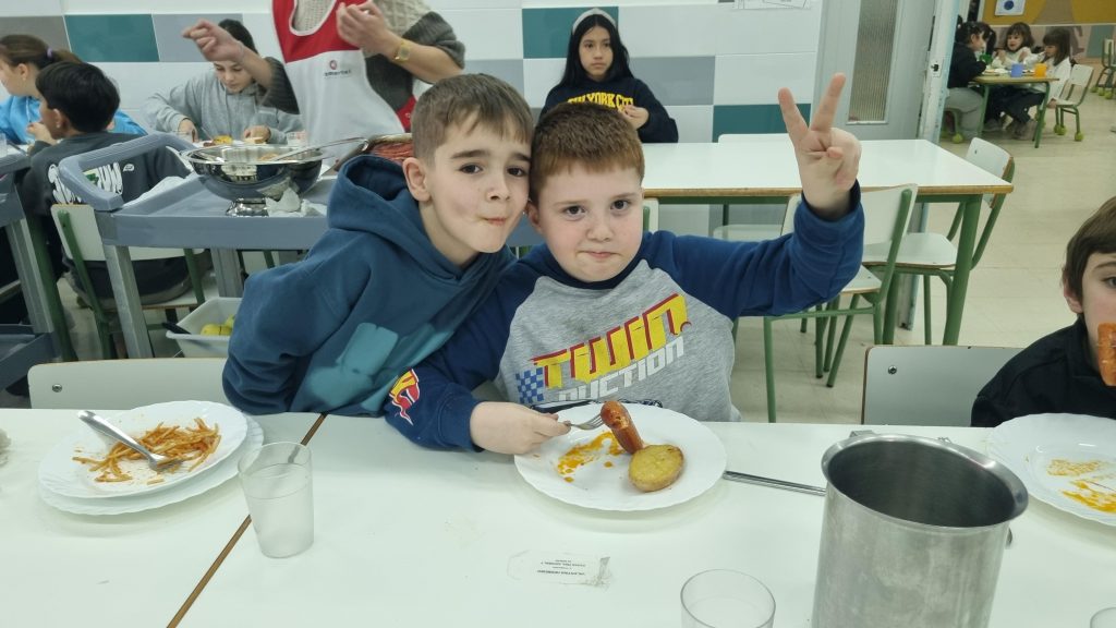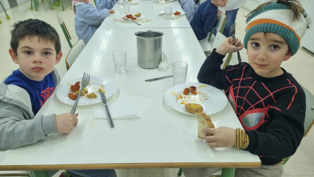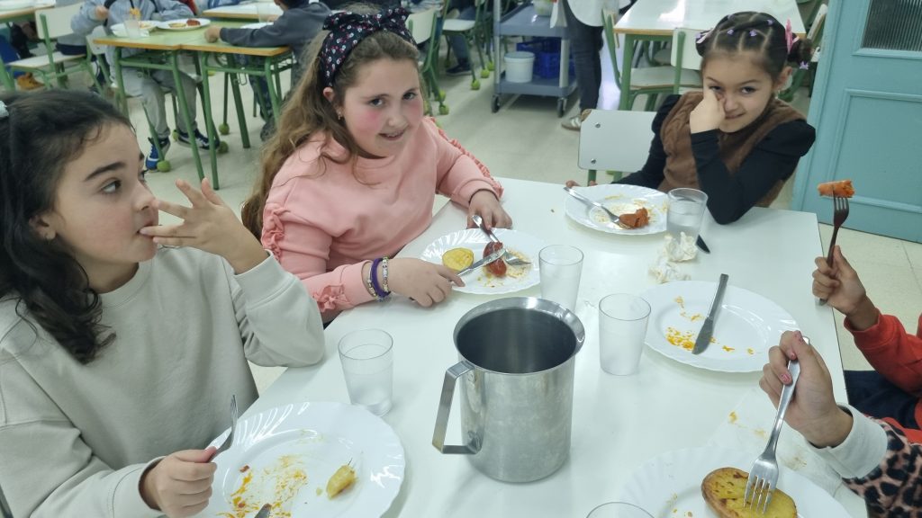 El menú de hoy en el comedor, para celebrar este día, han sido unos deliciosos chorizos a la sidra elaborados con todo el cariño y dedicación por nuestras maravillosas cocineras Yasmina, Cristina y Pili.