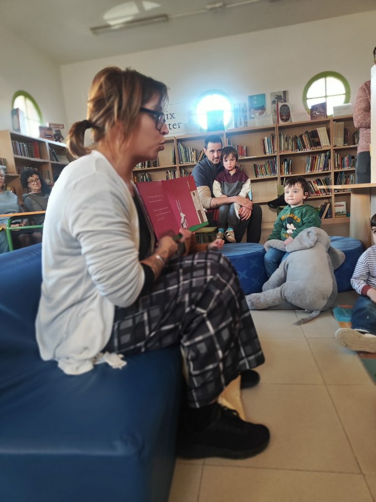 El viernes, Carol, mamá del cole nos contó tres cuentos estupendos. «Don Domingo Bardaringo», «El pequeño conejo blanco» y «Bocados y mordiscos». Qué buen rato nos hizo pasar con estas historias, qué bien las contó y qué atentos estábamos todos los que la escuchamos. Por más viernes de cuenta cuentos compartidos.