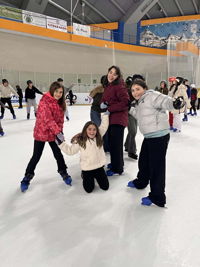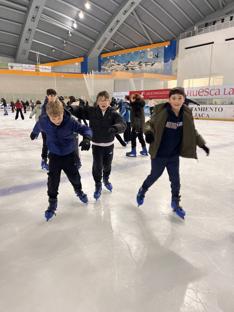 Pero esto no ha hecho que nuestro ánimo se viniera abajo. Después de ponernos ropa seca y preparar mochilas nos hemos ido rumbo a Jaca a pasar la tarde. Lo primero que hemos hecho ha sido irnos de compras. Luego nos hemos bajado a la pista de hielo para acabar la tarde con unos arriesgados giros y emocionantes carreras sobre patines.
