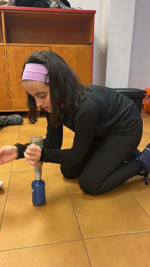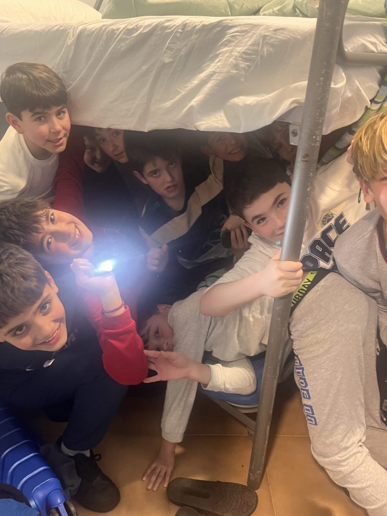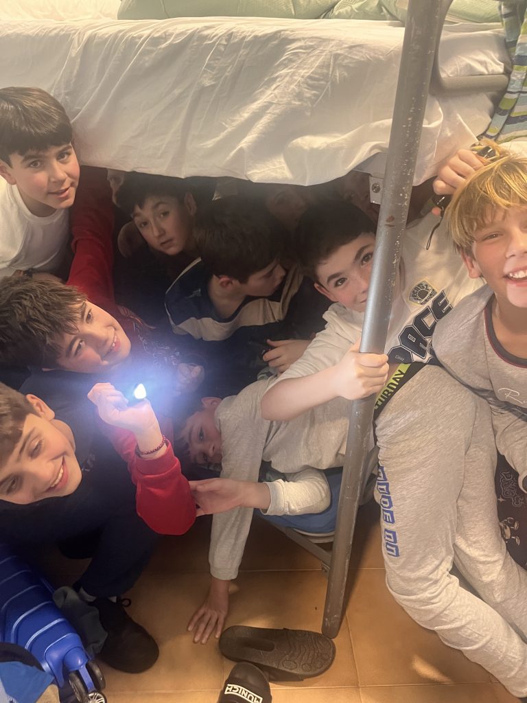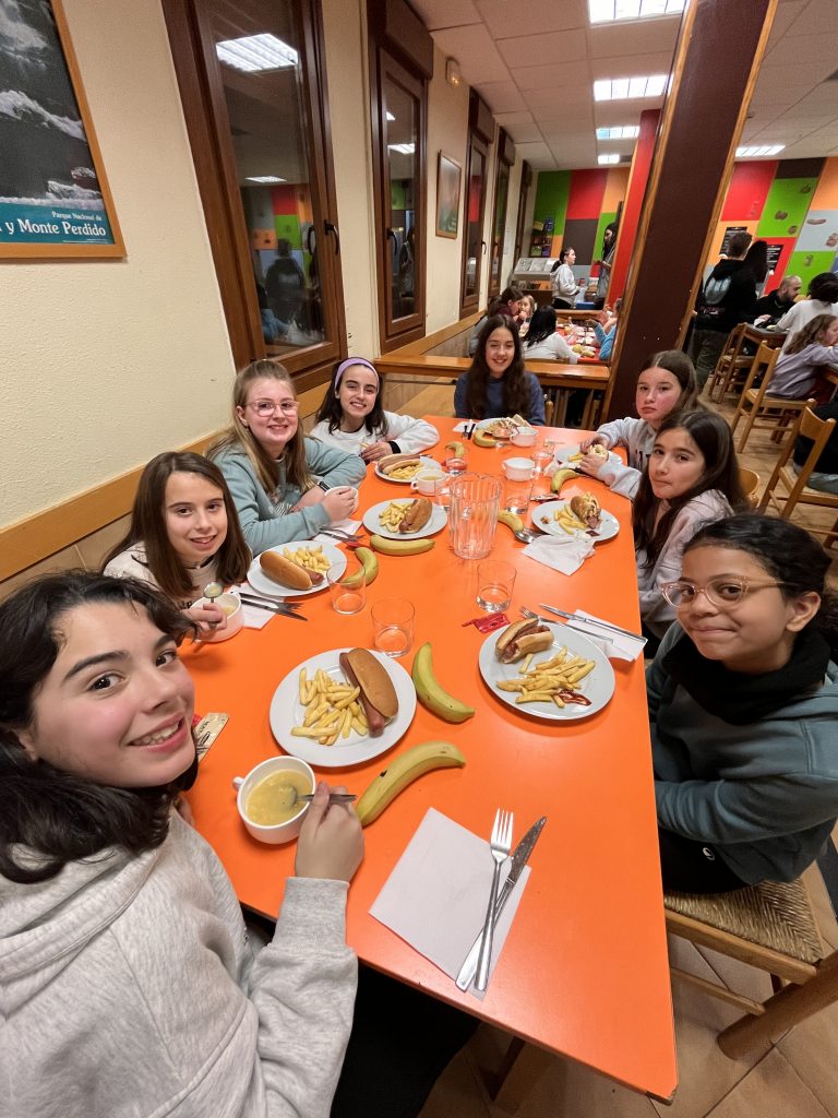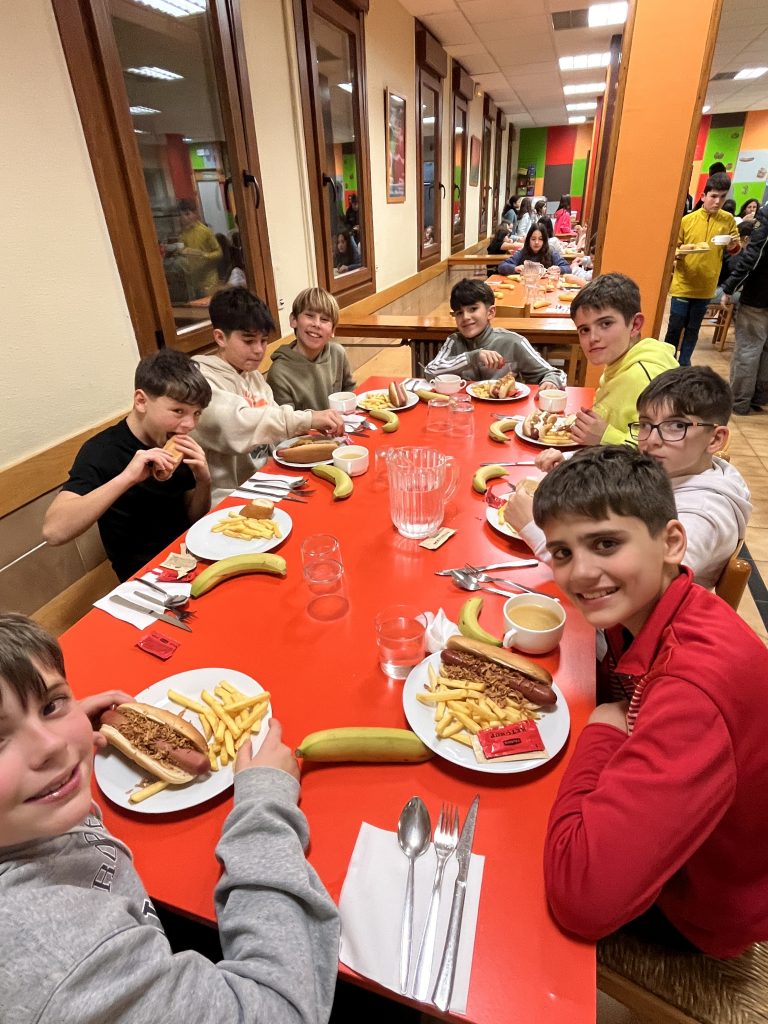 Para acabar el día hemos cenado una sabrosa sopa con fideos y un riquísimo hot dog que hemos podido rellenar con distintas salsas y cebolla crujiente. Y antes de irnos a la cama hemos realizado un divertidísimo juego de retos por equipos.