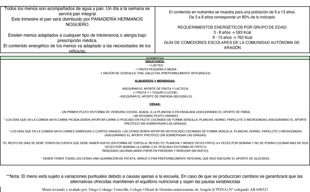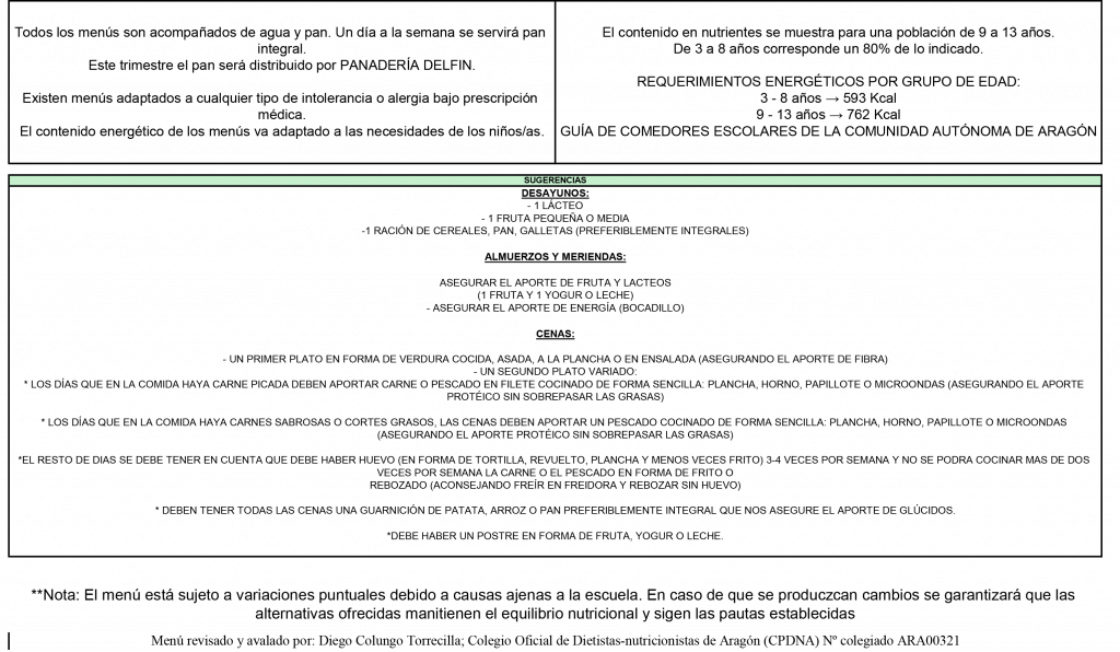 En el Servicio de Comedor tenemos una cocina de gestión directa siendo el propio colegio el que elabora el menú diario supervisado por un nutricionista colegiado: Diego Colungo Torrecilla.